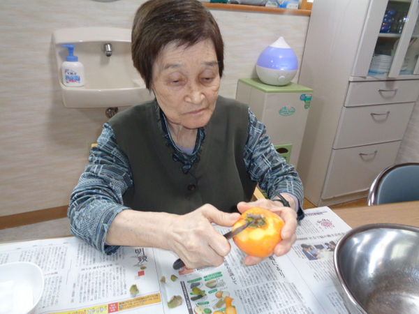 作業中は、干し柿話で盛り上がり、「干し柿はなますに入れるのが一番めぇ!」「ジャムにするのもめぇよ」