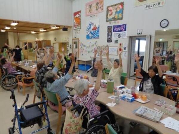 雨で空気がじとじとしていますが、皆さん元気に体操頑張ってらっしゃいます!!