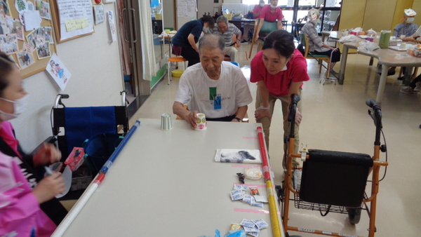 お手本として行う職員がムキになってしまう始末( ´∀` )笑