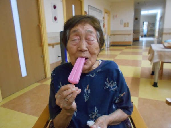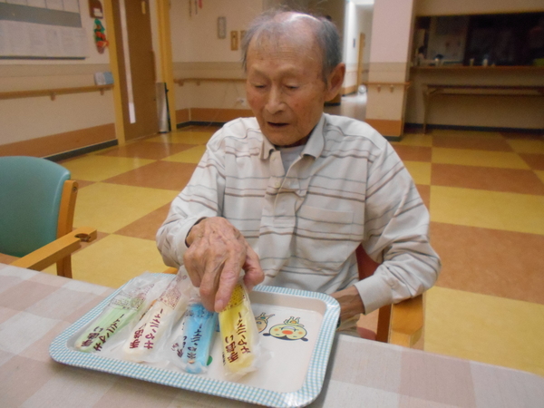 7月11日、みんなで好きなアイスを選んで食べました。どれにしようかな〜と悩みながら好みの味のアイスで涼みました。