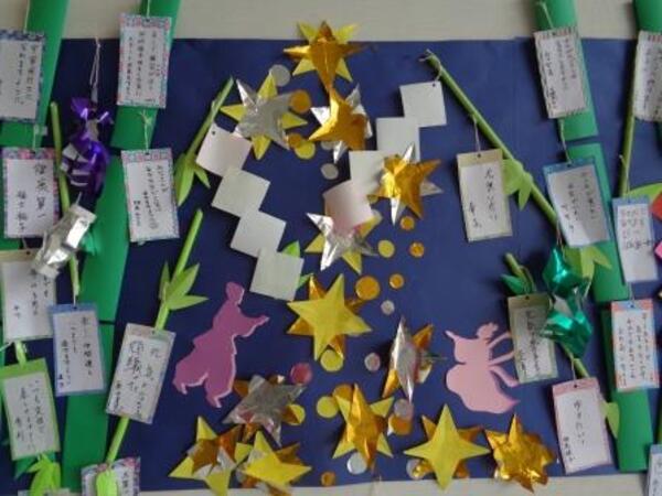 七夕の歌を皆で唄い、短冊に書いた願いを紹介しました。