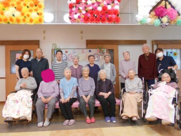 こども園の園児たちのダンスを見て手拍子する入居者様。