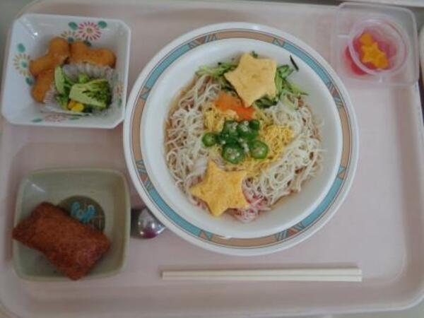 最後に、七夕をイメージした和菓子をいただき「おいしい」と笑顔見られ大好評でした。