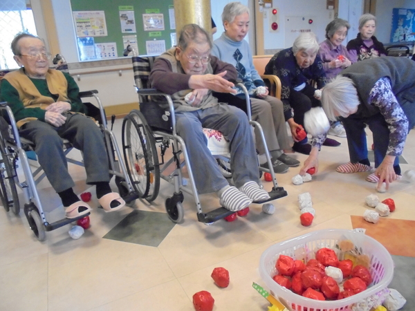 全員でひな祭りの歌を4番まで歌いあげ♪♬最後は紅白対抗玉入れゲームをし盛り上がりました。