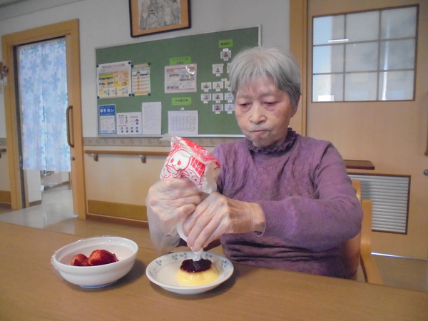 誕生会のあとはおやつ作りで『プリンアラモード』を作り、皆で美味しく頂きました。