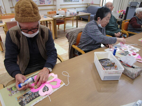 デイサービス浦町では、天井飾りを春仕様にアップデートすべく、製作活動真っ最中です!