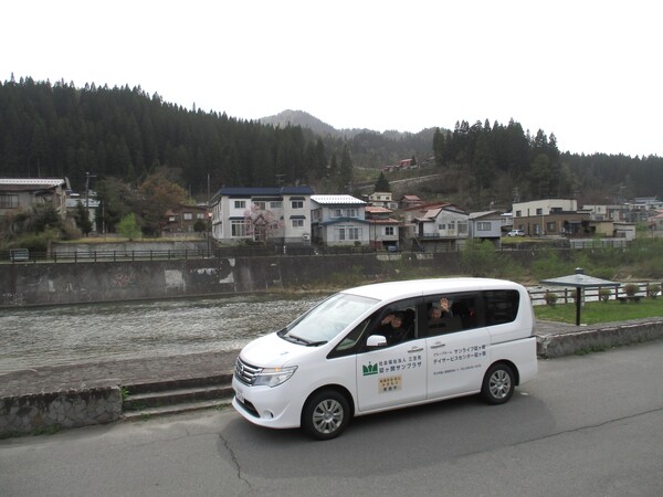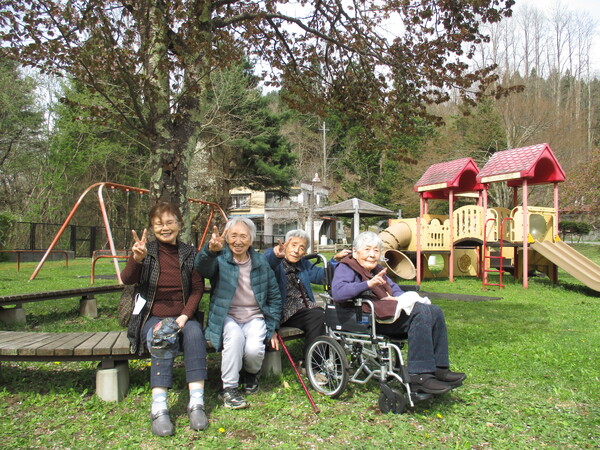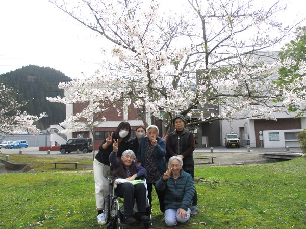 碇ヶ関に住所がある入居者様が多いので、道中では「ココわぁの家の近くだっ!」や「気になってた田んぼが見られて良かった〜」などの声が聞かれておりました。風は強かったが日差しが暖かく感じられ、皆様久しぶりの外出で良い気分転換になられたようです。
